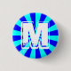 Weiße, grungy Monogramm auf einem trendigen Aqua-und blauen Sternexplosion-Muster.