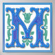M - Vintager Buchstabe M Inspirierte Vintag M als Initialdosis in blau, weiß und lila. Vintager Monogramm Buchstabe M, erstellt von print2d und lizenziert von Clipartto.com. Derivative Design Arbeit von VintageCabaret.