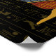 Dieses Poster zeigt Ma'at sitzend mit ausgebreiteten Flügeln und die Feder auf ihrem Kopf auf goldfarbenem ägyptischen Hieroglyph Hintergrund.
