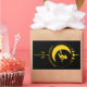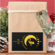 Schwarzes Mabon Design mit Monden, Hexe auf einem Besen mit einem Apfel und Weizen Akzente.