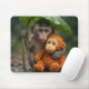 Macaque Monkey with a Stuffed Orangutan Mousepad