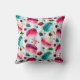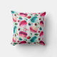 Ein niedliches Kissen mit einem Aquarellmuster von süßen und köstlichen französischen Makaronen, die überall herumstolpern. Hübsche Wasserfarben - Rosa, Rot und aquamarines Grün. Zu den zufälligen Beeren zählen Erdbeeren, Kirschen und Heidelbeeren. Frisch und köstlich. Set auf grünem Polka Punkt Hintergrund.