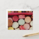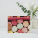 Macarons in verschiedenen Farben und Geschmacksrichtungen in einem rosa Kasten