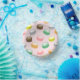 Eine Papierschale in rosa und mit Makaronen gefüllt, die sich perfekt für ein süßes 16 Party eignet.