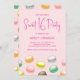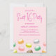 Schön und hübsch wirkende Makaronen auf einer modernen, rosa Geburtstagseinladung.