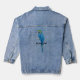 Macaw Design auf der Rückseite dieses Denim Jackets mit anpassbarem Text zum Ändern oder Löschen. Wählen Sie im Dropdown-Menü die gewünschte Größe aus.