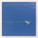 Ein Foto eines bunten Riesenvogel-Drachen mit Bändern, die aus seinen Flügeln im Wind schweben und im sommerlichen blauen Himmel hoch fliegen. Copyright © Kimberly J Tilley.
