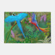 Ursprünglicher Entwurf der feinen Kunst der bunten tropischen Macawpapageien in einem zentralamerikanischen Dschungel durch Künstler und Designer Carolyn McFann zwei des schnurrenden Katzen-Studios druckte auf einer fadeproof, der Form und des Mehltaus beständigen Fußmatte für alle, die Liebe und wilde exotische Vögel nachplappert.