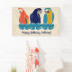 Fügen Sie Ihrem nächsten Party mit diesem benutzerdefinierten Banner ein paar tropische Farben hinzu. Es zeigt drei Makaws - einen raphonierten Ara, eine Hyazinthe-Ara und einen blauen und gelben Ara - in rotem, goldgelbem, marinebasierblauem, türkisblauem und grauem Set mit weichem cremefarbenem oder beigefarbenem Hintergrund.