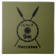 Eine schwarze militärische "gedämpfte" Darstellung eines Maccabee's Schildes und zwei Speere. Der Schild wird von einem Löwen und Text mit dem Text "Israel" (Israel) im Paleo-Hebräischen Alphabet geschmückt. Es wird auch Text mit "Maccabee" angezeigt. Die Maccabees waren jüdische Rebellen, die Juden aus dem Joch des Seleukiden Reiches befreiten. Chanukkah ist nicht nur ein Mittelwinterfest mit Kerzen und frittierten Köstlichkeiten, es feiert einen militärischen Sieg und sichert die Religionsfreiheit über das Seleukidenreich. Außerdem war der Aufstand ein ziviler Krieg gegen die Juden, die G-d treu waren, und gegen diejenigen, die den Hellenismus der Seleukiden adoptiert hatten.