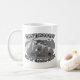 Diese lustige geologische Tasse zeigt einen Geologen aus dem Cartoon in Schwarz-Weiß, Retro, 1930er-1940er Cartoon Stil. Glücklich scheint Mr. Sun mit einer fröhlichen kleinen Wolke auf die Wüste zu blicken, und ein fröhlicher Geologe schaut mit seinem Rockhammer und seiner Handlinse ins Feld! Der graue Text auf der Tasse lautet "Keine Sorge! Ich bin Geologe!" Lass Leute wissen, dass sie in guten Händen sind, wenn man da ist!