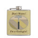 Diese coole geologische angesagte Flasche enthält den Satz "Keine Sorge! Ich bin Geologe!" mit einem Logo mit einem Cartoon, der auf einem eckigen, nicht konformen Hintergrund von einem Stein zeichne. Der Kolben selbst ist braun, mit einem schwachen, braunen, sich wiederholenden Felshammer-Muster.