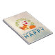 Ein Wendelheft mit einem Cartoon, der von einem niedlichen orangefarbenen Fuchs zeichne, der friedlich schlief, mit kleinen, herumschwebenden Herzen. Hinter einem grünlichen Laubkranz. Im Text steht: "Tun Sie, was Sie glücklich macht". Ein cremefarbener, grundierter Hintergrund mit einem trendigen, schwachen Muster geometrischer Formen.
