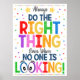 Tu das Richtige, selbst wenn niemand schaut! Poster in einem Klassenzimmer, Schulbüro, Schulhalle, Lunchroom, Schulberatungsbüro, Beratungsbüro für Kindertherapeuten, Büro für Schulpsychologe, Sozialarbeiterbüro, Büro für Sozialarbeiter oder Kinderpsychologe. Dieses Plakat ist auch ideal für Jugendliche oder Schüler-Dekoration und als motivierend Kunst in Klassenzimmern jeden Alters! Das ist eine großartige, inspirierend und zum Nachdenken anregende Kunstdekoration. Eine großartige, farbenfrohe, auffällige Grafik, die die Aufmerksamkeit der Kinder erweckt und sie daran erinnert, immer das Richtige zu tun! Eine großartige Möglichkeit, Ethik und antibulöse Erinnerungen in einem Klassenzimmer oder einer Schule zu fördern.