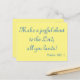 Als Postkarte, die inspirierendes Lob bietet, enthält dieses Design die Funktion "Macht einen fröhlichen Ruf an den Herrn, alles, was ihr landet!" Psalm 100:1 ist in einem schönen blauen Schriftart auf einem gelben Hintergrund geschrieben. Genießen Sie den Gruß Ihrer Lieben.