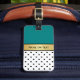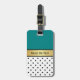 Dieses schicke Gepäckanhänger ist ein klassischer Schwarz-Weiß-Stil kombiniert mit aquamarinem Grün und individuelle Name Gold Band mit einer modernen Touch. Das Design besteht aus schwarzen Polka-Punkten auf weißem Hintergrund, mit einem goldenen Band personalisierten Namen und grün aquamarin. Es ist ein stilvolles Design, das perfekt dazu geeignet ist, eine Touch Glamour zu einem Koffer oder einer Tasche hinzuzufügen. Der Anhänger ist aus langlebigen Materialien gefertigt und verfügt über einen Metallverschluss, der Ihr Gepäck sicher festhält. Es verfügt auch über ein übersichtliches Fenster, in dem Sie Ihre Kontaktdaten anzeigen können, sodass Sie ohne Umschweife reisen können. Egal ob Sie auf einer Geschäftsreise oder im Familienurlaub abfliegen, dieses elegante Gepäckanhänger wird Ihnen helfen, sich von der Masse abzuheben und sicherzustellen, dass Ihr Koffer im Transit nicht verloren geht.
