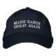 STELLEN Sie ERDE GROSSEN WIEDER Hut in dunkelblauem her. Die Antithese des Mottos des Trumpfs.