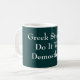 Eine dunkeltürkisfarbene Tasse mit "Griechische Schüler machen es mit Demosthenes" in weißem Text. Demosthenes war Redner im klassischen Griechenland. Er schrieb Reden für Gerichtsverfahren. Im Allgemeinen wird jeder Student des griechischen Rechts einen Teil seiner Arbeit gelesen haben, und einige, die die griechische Sprache lernen, werden dies auch tun, vielleicht sogar einen Teil davon übersetzen! Diese Tasse ist gut für jeden, der Griechisch oder das antike Griechenland studiert.
