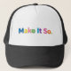Dieses T - Shirt-Design enthält den berühmten Star Trek-Satz "Make It So" in einem mehrfarbigen, retrofuturistischen Schriftart. Der Text wird mit einem coolen Farbverlaufseffekt gerendert, der durch die Farbtöne Blau, Grün und Orange übergeht, was ihm eine klassische Stimmung verleiht. Das Design ist sauber und kühn und konzentriert sich ausschließlich auf den berühmten Befehl von Captain Picard.