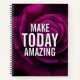 Ein Spiralheft mit dem inspirierenden Text: Machen Sie heute phantastisch. Entworfen mit einem Foto einer geheimnisvollen lila-rosa gotischen Rose.