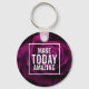 Ein Schlüsselanhänger mit dem inspirierenden Text: Machen Sie heute phantastisch. Entworfen mit einem Foto einer geheimnisvollen lila-rosa gotischen Rose.