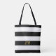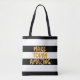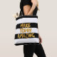 Diese lustige und fröhliche Tasche hat ein goldenes Make Today Phantastisches Design auf einem schwarz-weiß gestreiften Hintergrund. Es wird in einer handgepanzerten Typografie gemacht, die der Tasche ein trendiges und modernes Aussehen verleiht. Fügen Sie das erste Monogramm mithilfe des Vorlagenformulars auf der Rückseite des Beutels hinzu.