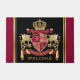 Erstellen Sie mit diesem schönen, klassischen Escutcheon oder Schild Ihre eigene aristokratische Wappen, Emblem, Insignien oder Familienwappen. Die prächtigen roten Muster schmücken einen Schild, der mit goldener Krone überzogen und von mittelalterlichem heraldischem Drachen flankiert ist. Ein passendes Top-Banner hält Ihr persönliches Hochzeitstag / Geburtsdatum / Slogan oder Schlachtruf. Der Schild hat Platz für Ihre Monogramm-Initialen. Das untere Banner trägt Ihren Familiennamen. Unten finden Sie auch Platz für Ihr Lieblingsangebot, Ihr Motto oder Ihre Nachricht. Ersetzen Sie den Beispieltext durch Ihren eigenen für ein personalisiertes Geschenk. Ein geschlechtsneutrales Design, das für Familien, Gruppen, Paare oder Einzelpersonen funktioniert. Ein wunderbares Geschenk für Hochzeit, Jahrestag, Geburtstag, Ruhestand, Werbeaktion, Vatertag, Bachelor Party, Polterabend, Abschluss, Internationaler Heraldry Day, mittelalterliche oder fantasievolle Partys und andere besondere Anlässe.
