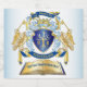 Entwerfen Sie Ihre eigene aristokratische Wappen-, Emblem-, Insignia- oder Familienwappen-Wappen mit diesem schönen, klassischen Escutcheon oder Schild-Design mit einem Zauberbaum, der mit Gold und Blau dekoriert ist und von goldenen Krone überragt wird, die mit Saphir, Aquamarine und Perlen besticht. Ein passendes Top-Banner in tiefblau hält Ihr individuelles Hochzeitdatum / Geburtsdatum / Schlachtruf oder anderen Text. Der Schild, flankiert von Adlern, hat Platz für Ihre Monogramm-Initialen. Das untere Banner trägt Ihren Familiennamen. Im Folgenden finden Sie ein antikes Buch, in dem Sie Ihren Lieblingsslogan, Ihr Motto, Ihre Botschaft oder Ihr inspirierendes Zitat finden können. Ersetzen Sie den Beispieltext durch Ihren eigenen für ein personalisiertes Geschenk. Das ist ein wunderbares Geschenk für Hochzeit, Geburtstag, Geburtstag, Ruhestand, Werbeaktion, Vatertag oder Muttertag, Buchklubeinweihung, Polterabend, Abschluss, Internationaler Heraldry Day, mittelalterliche oder fantasy-thematische Party und andere besondere Anlässe.