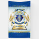 Mit diesem wunderschönen, klassischen Escutcheon oder Schild-Design, das mit einem zauberhaften Baum geschmückt ist, mit Goldmantelung und blauen Mantellierung, die von goldfarbener Krone mit Saphire, Aquamarine und Perlen überzogen ist, erstellen Sie Ihre ganz eigene aristokratische Wappen, Emblem, Insignien oder Familienwappen. Ein passendes Top-Banner in tiefblau hält Ihr individuelles Hochzeitdatum / Geburtsdatum / Schlachtruf oder anderen Text. Der Schild, flankiert von Adlern, hat Platz für Ihre Monogramm-Initialen. Das untere Banner trägt Ihren Familiennamen. Im Folgenden finden Sie ein antikes Buch, um Ihren Lieblingsslogan, Motto, Botschaft oder inspirierendes Zitat zu halten. Ersetzen Sie den Beispieltext durch Ihren eigenen für ein personalisiertes Geschenk. Ein wunderbares Geschenk für Hochzeit, Geburtstag, Ruhestand, Werbeaktion, Mutter- oder Vatertag, Buchklubeinauguration, Polterabend, Abschluss, Internationaler Heraldry-Tag, mittelalterliche oder fantasievolle Partys und andere besondere Anlässe.
