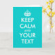 Machen Sie Ihre eigene lustige Behalt ruhige Grußkarte. Niedliche Karte für verschiedene Momente. Anpassbarer Text und benutzerdefinierte Hintergrundfarbe. Erstellen Sie Ihre eigene behalt Ruhe und führen Sie Parodie weiter. Türkisblaue, ruhige Gestaltung.