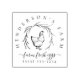 Diese Vintage Briefmarke des Bauernhauses würde auf Eierschachteln, Papiertüten und anderen Verpackungen für frische Produkte aus Ihrem Familienbetrieb schön aussehen! Es zeigt eine Vintage Darstellung einer Henne in der Mitte, umgeben von einem rustikalen botanischen Kranz. Oben steht Ihr Familienname in eleganter Typografie, die sich anmutig um das Bild biegt. Im unteren Teil zwei Sondertexte: "Frische Eier züchten" in Kalligraphie-Skript und Telefonnummer. Um diese Briefmarke anzupassen, klicken Sie auf die Schaltfläche"Diese Vorlage personalisieren" und ändern Sie die Informationen.