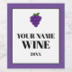 Machen Sie Ihre eigenen Weinetiketten mit lila Traubenlogo. Passen Sie Flaschen mit Ihrem eigenen Textetikett an. Ideal zum Geburtstag, Hochzeitsfeier, Business, Weinverkostung, Weinberg und vieles mehr. Einzigartige Trinkgeschenke.