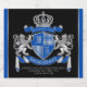 Mit diesem schönen, klassischen Escutcheon oder Schild-Design kreieren Sie Ihre ganz eigene aristokratische Wappen, Emblem, Insignien oder Familienwappen. Cobalt Blue-Muster schmücken einen Schild mit silberner Krone und flankiert von mittelalterlichen heraldischen Löwen oder Greifen. Ein passender Top-Banner hält Ihr persönliches Hochzeitdatum / Geburtsdatum / Slogan oder Schlachtruf bereit. Der Schild hat Platz für Ihre Monogramm-Initialen. Das untere Banner trägt Ihren Familiennamen. Weiter unten finden Sie Platz für Ihr Lieblingszitat, Ihr Motto oder Ihre Nachricht. Ersetzen Sie den Beispieltext durch Ihren eigenen für ein personalisiertes Geschenk. Ein geschlechtsneutrales Design, das für Familien, Gruppen, Paare oder Einzelpersonen funktioniert. Es ist ein wunderbares Geschenk für Hochzeit, Geburtstag, Geburtstag, Ruhestand, Werbeaktion, Vatertag, Bachelor Party, Polterabend, Abschluss, Internationalen Heraldry Day, mittelalterliche oder Fantasy-Partys und andere besondere Anlässe.