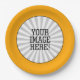 Stellen Sie Ihr eigenes kundenspezifisches Party Papierplatte leicht in einem Schritt her. Laden Sie Ihr Bild und sehen Sie es in einem gelben Rahmen Sun. Sie können den kleineren Pappteller hier auf dieser Produktseite auch nach rechts vorwählen.
