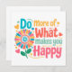Umgeben Sie sich mit dieser reizvollen Grußkarte "Do more Of What Maes You Happy", die von niedlichen, farbenfrohen Blume betont wird. Dieses fröhliche, motivierend Kunstwerk ist eine sanfte Erinnerung, sich das zu eigen zu machen, seine Träume zu verfolgen und der Selbstversorgung Priorität einzuräumen. Ein großartiges Geschenk für das Bewusstsein für psychische Gesundheit, für persönliche Wachstumsenthusiasten oder für jeden, der etwas tägliche Inspiration braucht.