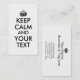 Make fertigte behält ruhige Geschäftskarten für Ihren Selbst- oder Geschäft mit dieser Schablone besonders an. Sie hat das behalteneruhe-Kronenlogo im Schwarzen und die Wörter in den schwarzen Buchstaben. Sie sagt behält Ruhe und Ihren Text.