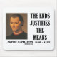 Zitierfähiges Zitat durch politischen Philosophen Niccolo Machiavelli der italienischen Renaissance. Obgleich nie speziell zitiert im Prinzen, Machiavellis Handbuch für florentinische Machthaber, ein Hauptteil seiner Arbeit, war, dass "die Enden die Durchschnitte rechtfertigt". Stellen Sie Ihren politischen Esprit und Klugheit betreffend Statecraft und den Unterschied zwischen Durchschnitten und Enden mit irgendwelchen Geschenken zur Schau! Vervollkommnen Sie Geschenke für das skrupellose innen!