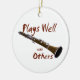 Klarinette "Plays well with other" auf der einen Seite und das Foto deines Musikers auf der anderen Seite. Fügen Sie Schulband, Name und Datum für einen wunderbaren Sake hinzu.