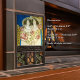 The ceramic tile depicting two women and roses is a stunning piece of art that can be found in the House for an Art Lover, designed by Charles Rennie Mackintosh. The artwork is located in the dining room, known as the "Decor de la salle a mangèr," which adds elegance and femininity to the space. The tile features two women in flowing dresses, surrounded by lush, blooming roses. The women's expressions are serene and contemplative, and the intricate detailing on their dresses and the roses are breathtaking. The tile is made of high-quality ceramic and glazed with rich, vibrant colors that bring the image to life. The tile motif adds a beautiful and unique element to the dining room, showcasing Mackintosh's artistic flair and ability to blend traditional and modern elements in his designs seamlessly.
