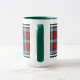 Kaffee-Tasse mit dem Tartan für Clan MacLaine und seine Stücke, einschließlich Cormack und MacFadden. Hellrot, himmelblau und waldgrün Schottisches kariertes Muster aus dem Jahr 1810 mit gelben goldenen Akzenten.