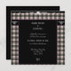 Original schottische Clan Tarttan Hochzeitseinladung in MacPherson Dress Modern Design. Schnörkel in Silber und Diamant auf schwarzem Hintergrund