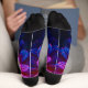 This pair of Crystalline Cascade socks brings a fiery core blazing into electric blue petals to your daily steps. Each sock features the complete, undivided artwork as a single wearable masterpiece. A luminous fusion of vintage botanical inspiration and AI imagination