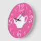 Mad Hatter Tee Party Niedlich Rosa und Weiß Große Wanduhr