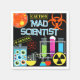Mad Scientist Birthday Papierservietten, ein großartiges Design, das mit Teströhren, einem Glas Augapfel, Beakers und mehr mit blauem Text, der mit Weiß umrahmt ist und Mad Scientist lautet! Wir haben die passenden verrückten Wissenschaftler Geburtstagseinladungen, Papier-Teller, T - Shirt und Schokolade getaucht Oreos!