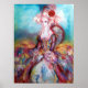 Original watercolor ,acrylic painting with gold foil and iridescent colors on canvas.Vibrant, colorful and unique contemporary art in bright ,red ,pink ,blue white colors .Beautiful sophisticated blonde woman character,sparkling fabrics of a baroque costume with a red rose. Zazzle.com