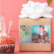 Elegantes, farbenprächtiges, elegantes und einzigartiges Design in hellen, rosa und blauen Farbtönen. Schöne, raffinierte blonde Frauenfigur, funkelnde Stoffe eines barocken Kostüms mit einer rote Rose. Original Aquarell und Acrylmalerei mit Goldfolie und leuchtenden Farben auf der Leinwand. Zazzle.com