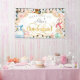 Alice's Onederland Mädchen 1. Geburtstag rosa Hintergrund Banner. Hübsche rosa Alice im Wunderland erste Geburtstagsthema für Mädchen. Mad hatter, rosa Blumengarten, hohes Tee-Party, Geburtstagsfeier.
