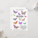 Eine Sammlung von bunten, psychedelischen Schmetterlingen in lebhaften rosa, lila, blau, orange, gelb und aqua. Ein wunderschöner, bunter Schmetterling, flatternder Geburtstagsfeier. Diese lustige Party Einladung ist leicht zu personalisieren, um eine einzigartige Party Einladung zu schaffen, geeignet für Mädchen und erwachsene Schmetterlingsliebhaber. Farbenfrohe psychedelische Schmetterlingsbilder der Künstlerin Catherine Sweetman