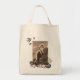 Eine Vintagkunst inspirierte Lebensmittelgeschäft-Taschentasche mit einem Bild eines Mädchens an der Küste, die durch Muscheln und Schwalben gerahmt ist.