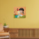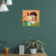 Ein Mädchen sitzt an einem Schreibtisch und arbeitet mit einem Haufen Bücher. Dieses Design sieht auf diesem Poster wirklich effektiv aus